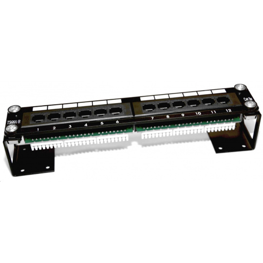 Patch panel 12 portov Cat5E UTP pre 10" rozvodnice zárezové svorkovnice typu "DUAL" alebo s držiakom, možná montáž na stenu alebo atypickej rozvodnice