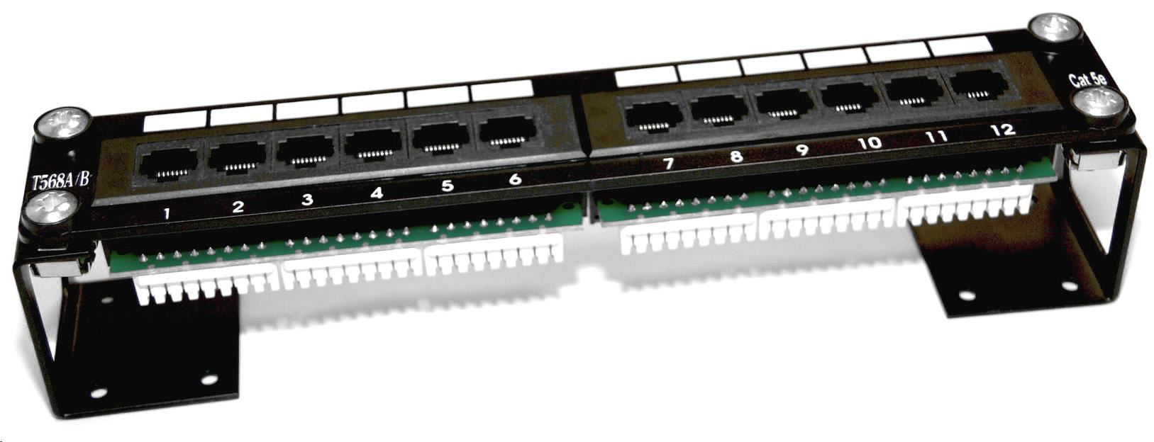 Patch panel 12 portov Cat5E UTP pre 10" rozvodnice zárezové svorkovnice typu "DUAL" alebo s držiakom, možná montáž na stenu alebo atypickej rozvodnice