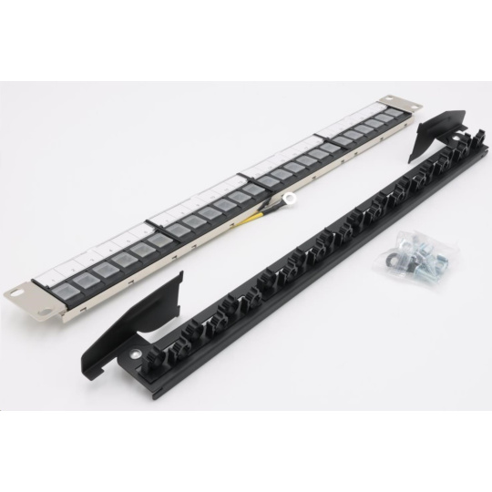 19" modulárny tienený patch panel XtendLan 24port, 4x odnímateľný modul, čierny