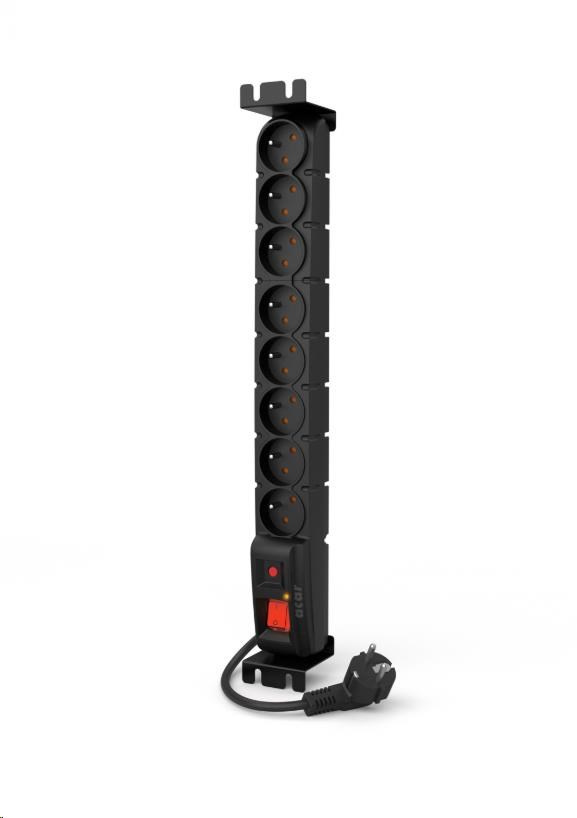 .19" rozvodný panel ACAR 8x230V, vypínač, indikátor napětí, přepěťová ochrana, kabel 1,5m