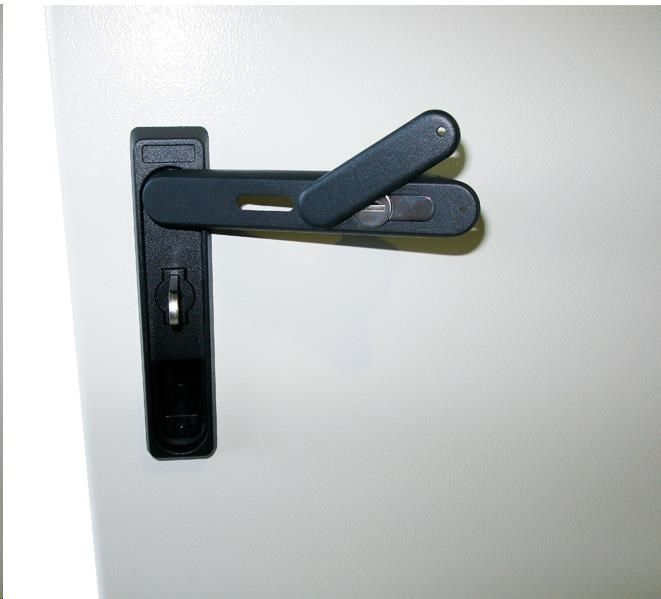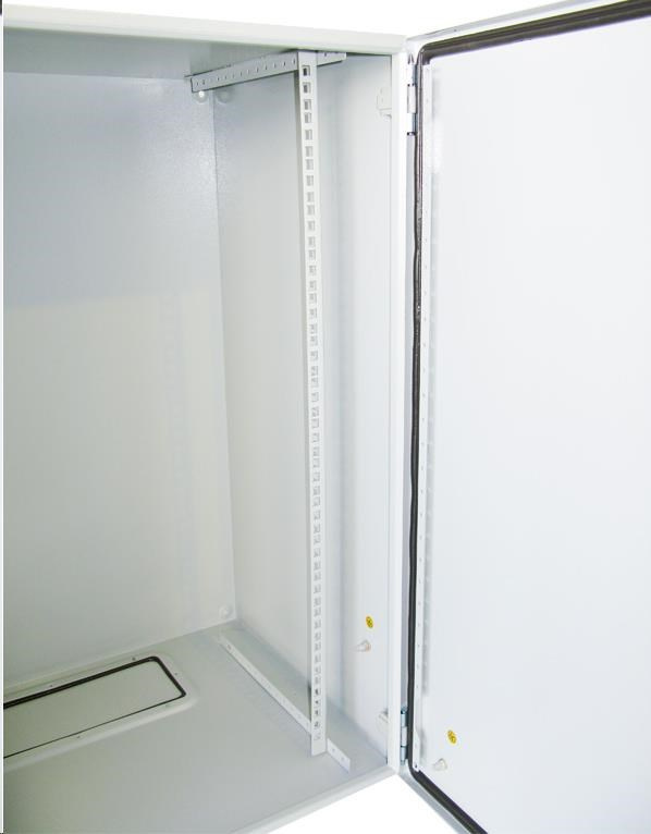 Vonkajší stenný rozvádzač vyrobený z valcovanej ocele s hrúbkou 1,5 mm. Trojvrstvová povrchová úprava. Uskutočnenie: dvere - plné, otvárateľné o 110°, 3-bodový zámok, zámok je možné otočiť, tesnenie z penového polyuretánu zadný kryt - plný bočný kryt - plný horný kryt - plný