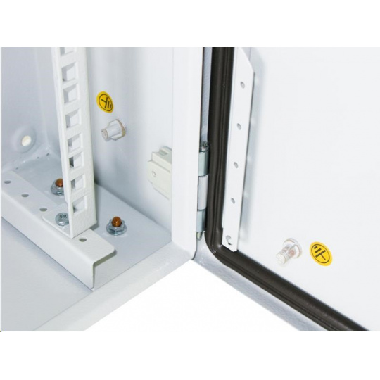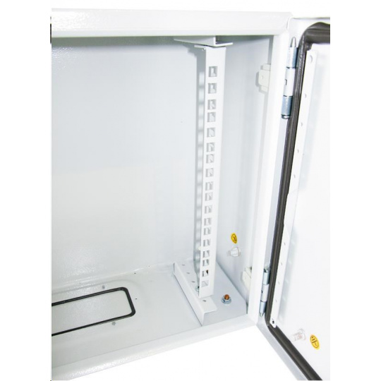 Vonkajší nástenný rozvádzač vyrobený z valcovanej ocele s hrúbkou 1,5 mm. Trojvrstvá povrchová úprava. Provedenie: dvere - plné, otvárateľné o 110°, zameniteľný smer otvárania, tesnenie z penového polyuretánu zadný kryt - plný bočný kryt - plný horný kryt - plný
