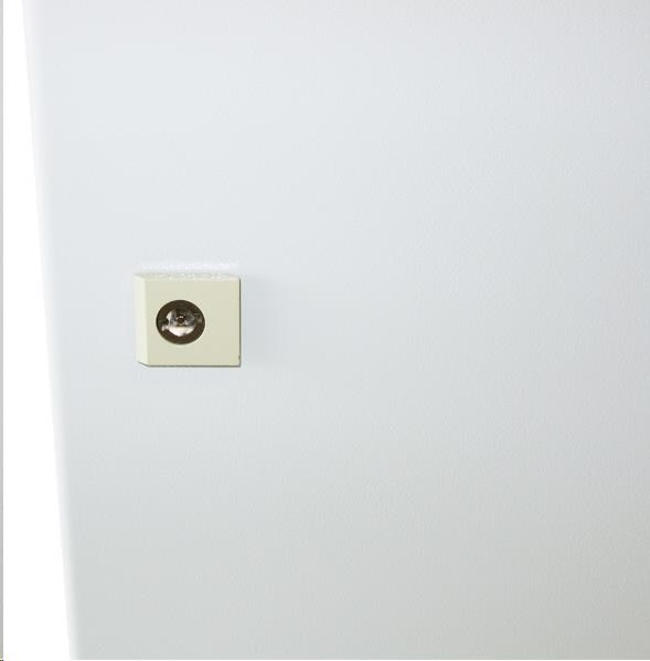 Vonkajší nástenný rozvádzač vyrobený z valcovanej ocele s hrúbkou 1,5 mm. Trojvrstvá povrchová úprava. Provedenie: dvere - plné, otvárateľné o 110°, zameniteľný smer otvárania, tesnenie z penového polyuretánu zadný kryt - plný bočný kryt - plný horný kryt - plný