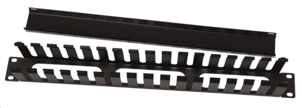 Celokovový panel na viazanie káblov vhodný na voľnú montáž veľkého množstva káblov. Vyrába sa vo verzii 1U a je vybavený krytom káblov. Výška: 1U Profil kábla: 40 x 70 mm Farba: čierna..