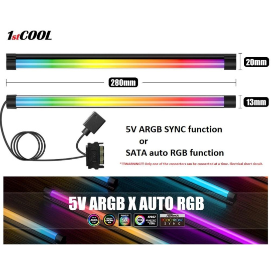1stCOOL AURA RAINBOW led ARGB osvetlenie, sklenená trubica 28cm 3-pin ARGB konektor, alebo automatický režim cez SATA konektor