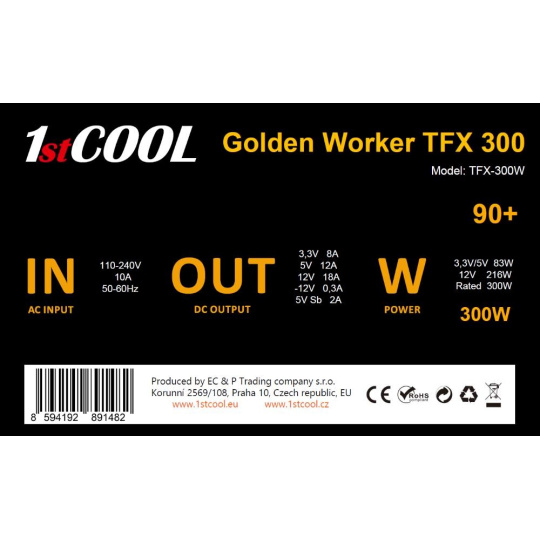 .1stCOOL Zdroj Golden Worker TFX 300 88+, 300W, TFX, černá