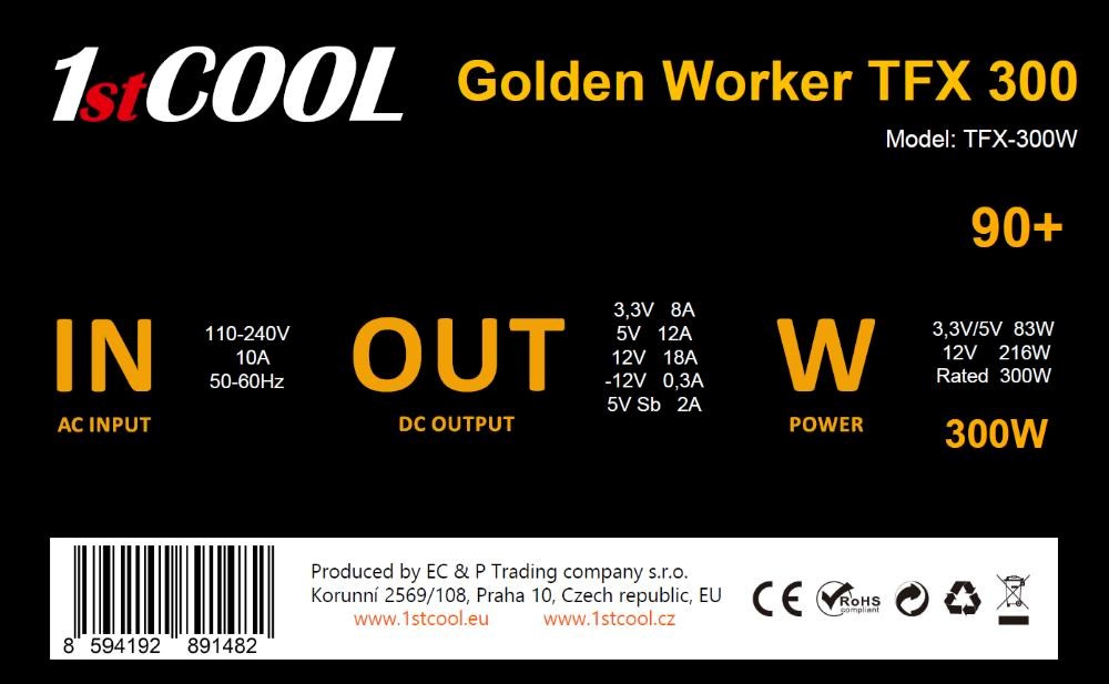 .1stCOOL Zdroj Golden Worker TFX 300 88+, 300W, TFX, černá