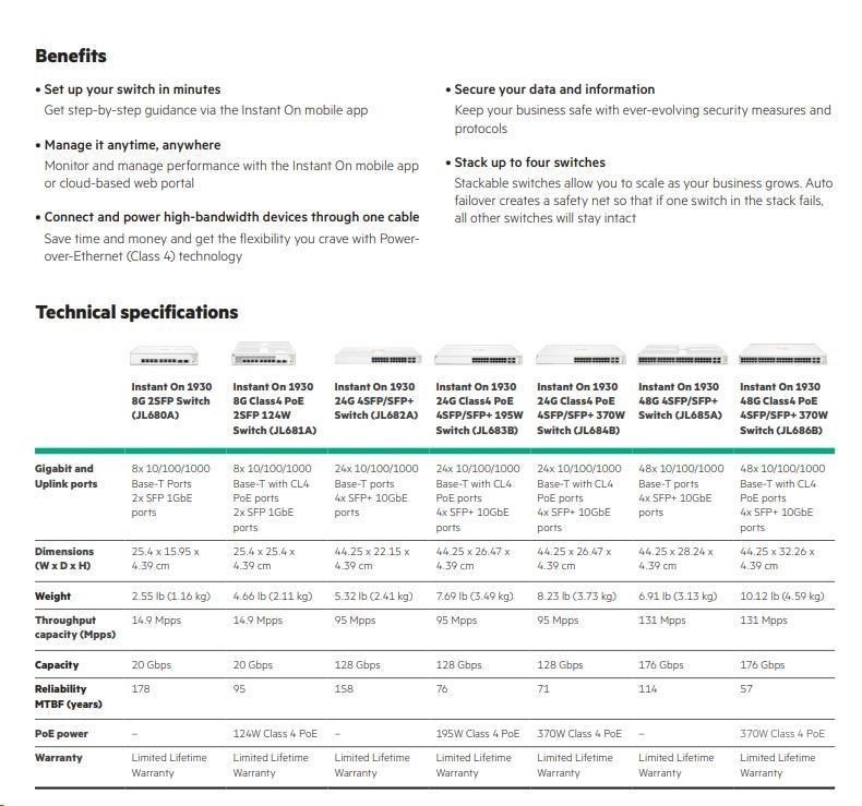 5 x HPE Networking Instant On Switch 24p Gigabit CL4 PoE 4p SFP+ 370W 1930
