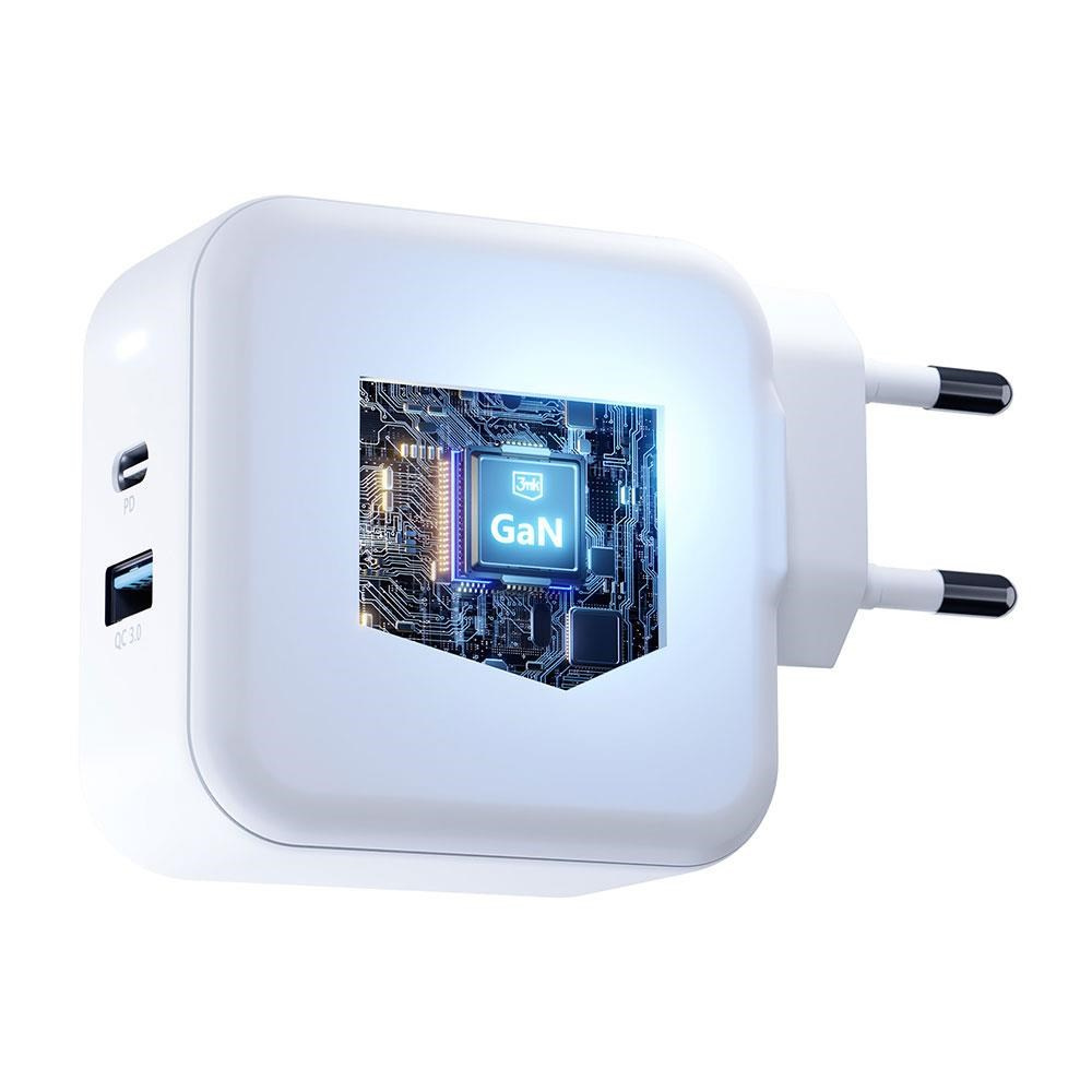 3mk síťová nabíječka - Hyper Charger 68W, GaN, 1x USB-C (PD), 1x USB, bílá