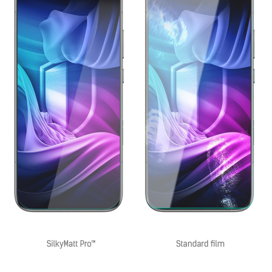 SilkyMatt Pro je ochranná fólie, která je bezohledná vůči každodenním rizikům. Zesiluje obrazovku chytrého telefonu až o 400%! Jednou z vrstev ve víceprvkové struktuře je mnohokrát přetestován protinárazový základ. Jeho přítomnost výrazně minimalizuje riziko poškrábání a poškození displeje při pádu na tvrdý povrch a kontaktu s ostrými předměty. Se SilkyMatt Pro ušetřete si stres a drahé výměny obrazovky. Můžete používat telefon kdy chcete a nosit jej tak, jak máte rádi.