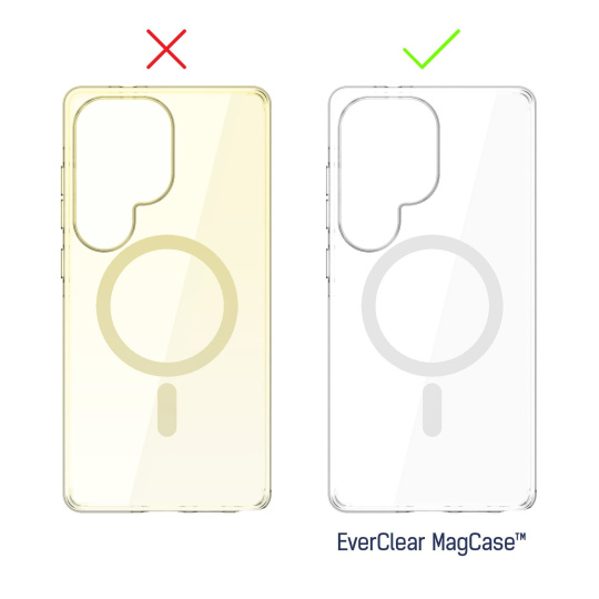 Ne každý kryt je stejný. EverClear MagCase™ byl vytvořen pro ty, kteří nechtějí dělat kompromisy — ani ve vzhledu, ani v odolnosti. Většina průhledných krytů časem žloutne — vlivem UV záření a méně kvalitních materiálů. EverClear MagCase™ je jiný. Je vyroben výhradně z vysoce kvalitního polykarbonátu (100% PC), díky čemuž si zachovává svou čirost mnohem déle. Tohle není slib — to je technologie.