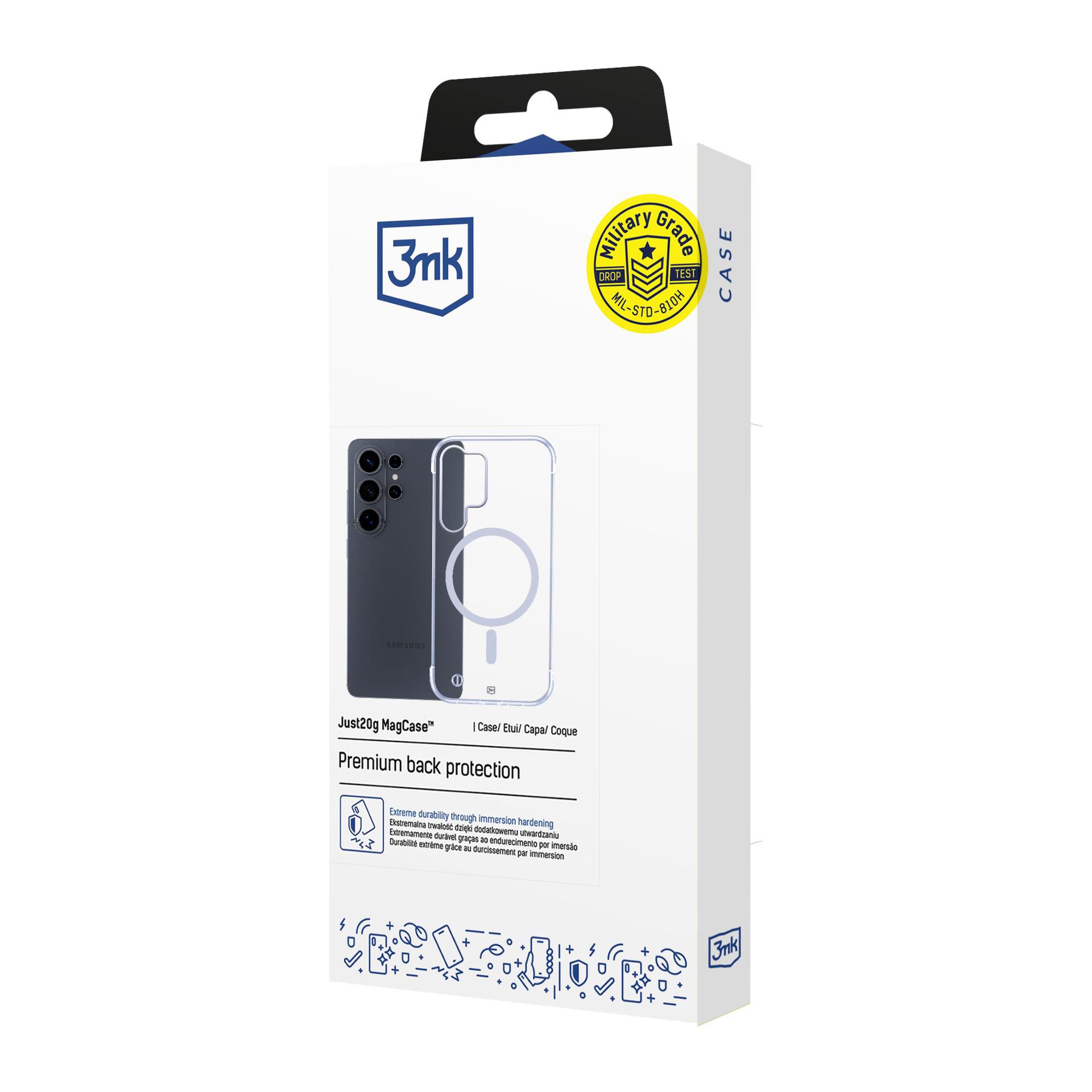 Pouzdro Just20g MagCase™ váží pouhých 20 g, a přesto nabízí spolehlivou ochranu, což potvrzuje jeho certifikace Military Grade. Lehkost a spolehlivost v jednom - skutečný technologický pokrok. Nízká hmotnost neznamená kompromis v ochraně, právě naopak: díky použití odolného polykarbonátu, který se používá v nebezpečných prostředích a prošel speciálním procesem tvrzení, je pouzdro mimořádně odolné. Poskytuje spolehlivou ochranu a zároveň zůstává téměř nepostřehnutelné, což umožňuje plně využít výhod tenkého tvaru telefonu.