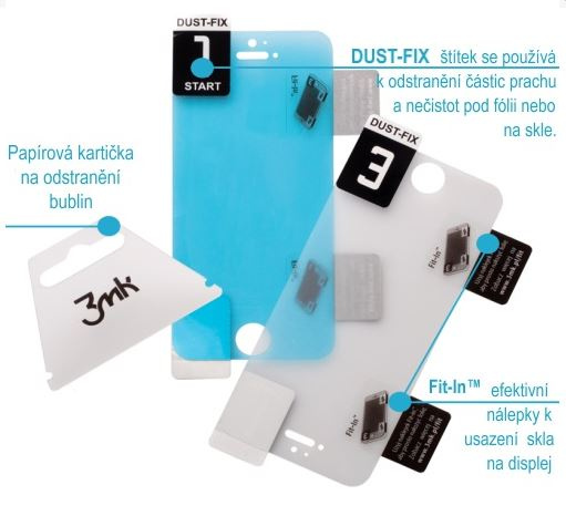 - Sada obsahuje: FlexibleGlass, kartičku na rozptýlenie bublín, polohovacie samolepky Fit-In™ a samolepky Dust-Fix™, čistiaci a suchý handriček.