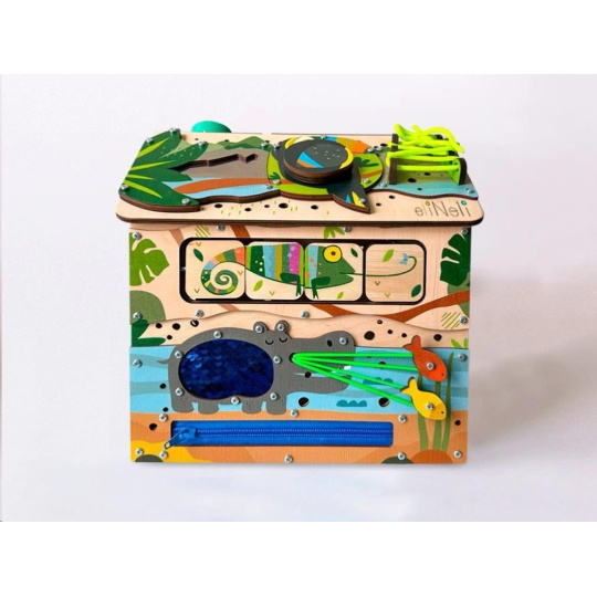 Activity board domček zavádza deti na safari, do divokej prírody s milými zvieratkami. Montessori prvky na activity board domčeku umožňujú deťom všestranne sa rozvíjať vďaka svojej prirodzenej zvedavosti.