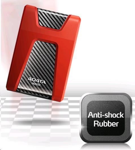 Externý pevný disk ADATA 1TB 2,5" USB 3.1 DashDrive Durable HD650, červený (gumový, odolný voči nárazom)