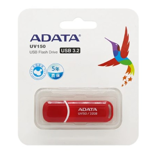 ADATA Flash disk 32GB UV150, USB 3.1 disk Dash Drive (R:90/W:20 MB/s) červený