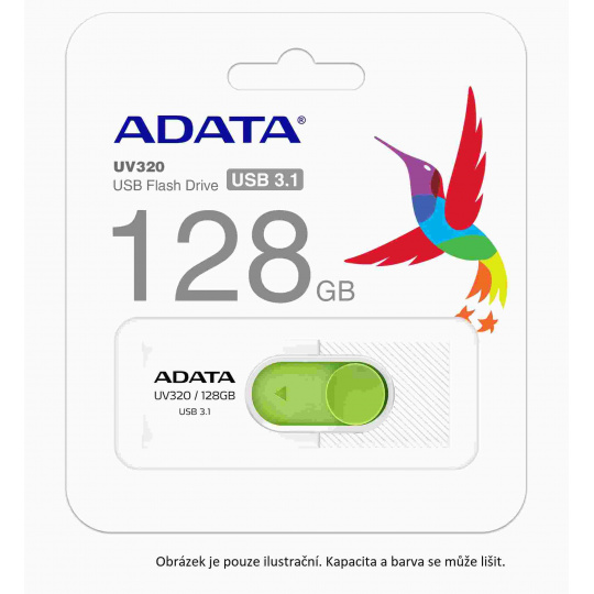 ADATA Flash Disk 64GB UV320, USB 3.1 Dash Drive, biela/zelená