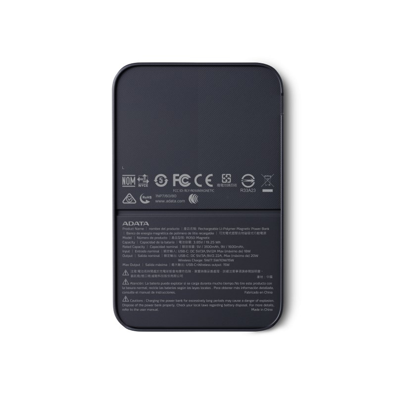.ADATA PowerBank R050 Magnetic, 5000mAh, 3.85A, černá (19.25Wh)