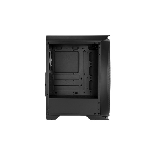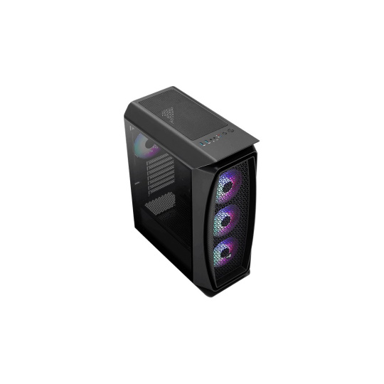 Vysoko výkonný Mid Tower počítačový skrinka s bočným panelom z tvrdeného skla na predvedenie vnútra vášho zariadenia. Sieťovaný dizajn predného panelu umožňuje jasný pohľad na vaše predné LED ventilátory a zároveň zabezpečuje vynikajúci prúdenie a cirkuláciu vzduchu.