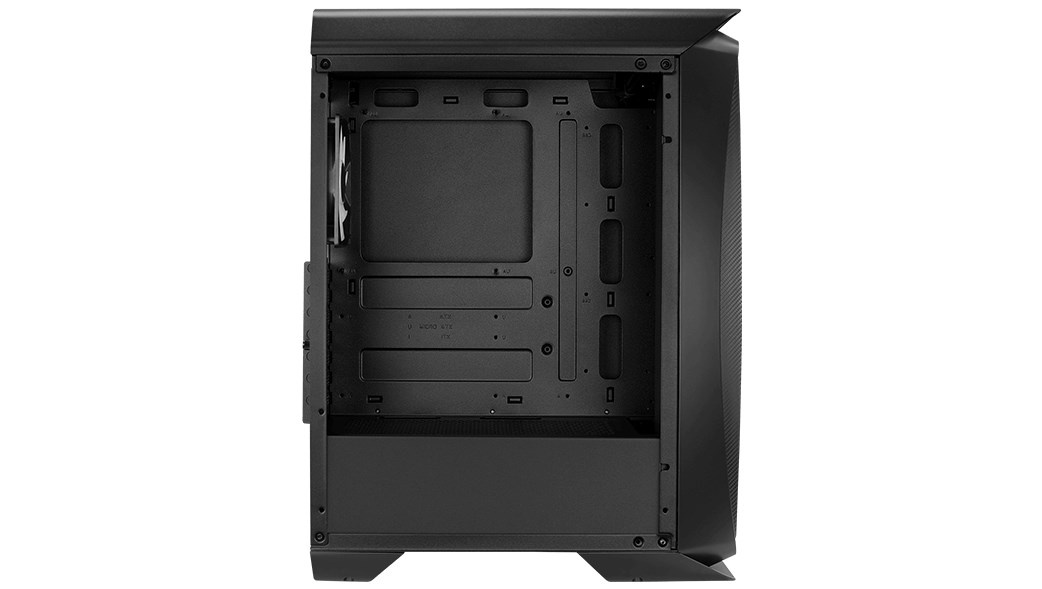 Vysoko výkonný Mid Tower počítačový skrinka s bočným panelom z tvrdeného skla na predvedenie vnútra vášho zariadenia. Sieťovaný dizajn predného panelu umožňuje jasný pohľad na vaše predné LED ventilátory a zároveň zabezpečuje vynikajúci prúdenie a cirkuláciu vzduchu.
