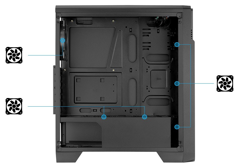 súčasťou skrinky sú 3x 120mm namontované predné ventilátory