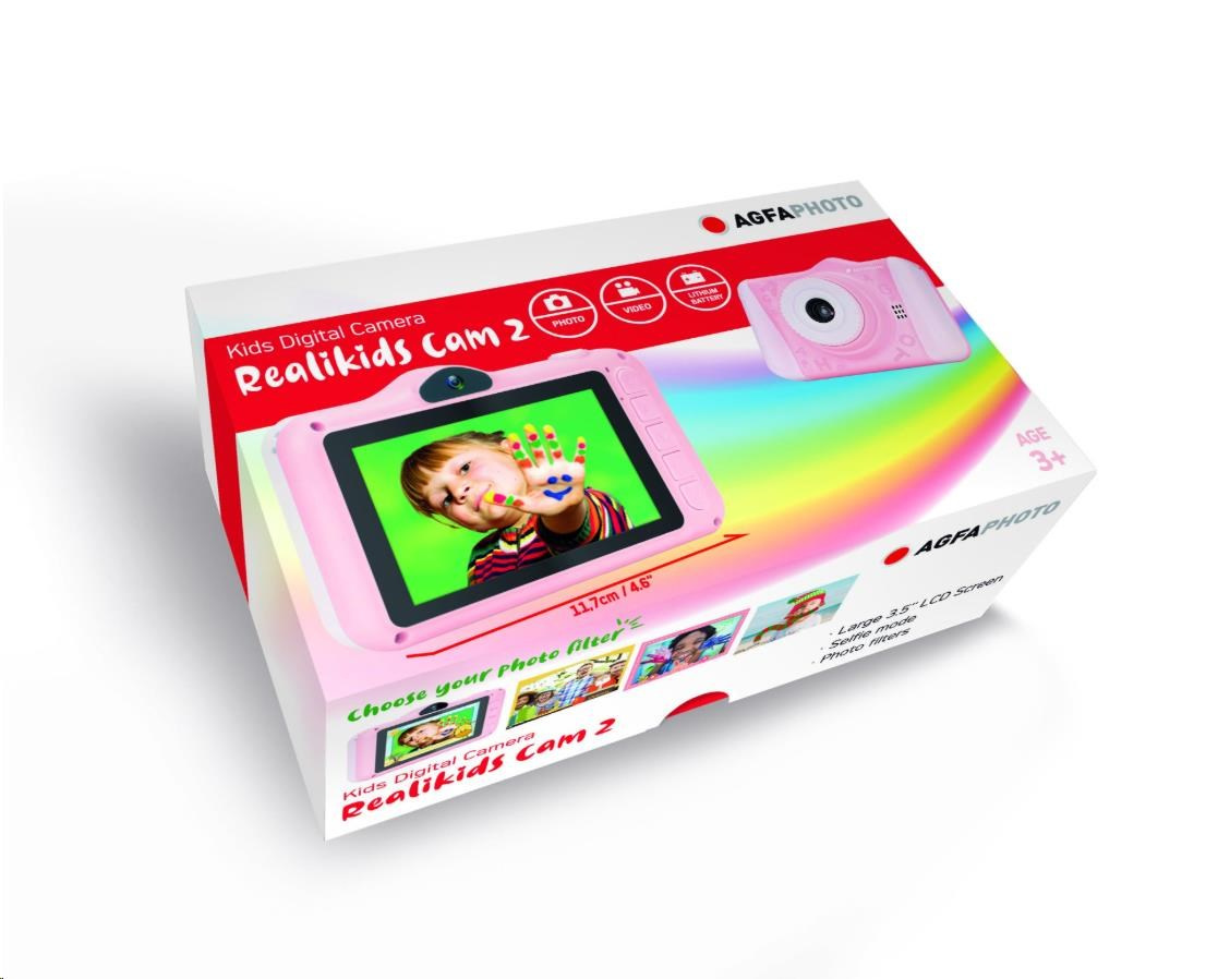 Realikids Cam 2 je ideálny digitálny fotoaparát pre deti. Jeho CMOS senzor umožňuje zachytávať nádherné fotografie a videá v HD. Má 3,5" LCD displej, na ktorom si môžete prezrieť svoje fotografie. Má tiež port pre micro SD karty až do 32 GB (nie je súčasťou dodávky). Jeho zábavný a ergonomický dizajn zaručuje dokonalé uchopenie a poteší každého malého fotografa.