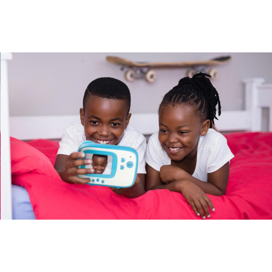 Realikids Instant Cam je ako digitálny fotoaparát, ktorý zachytáva fotografie a videá, tak okamžitý fotoaparát, ktorý tlačí čiernobiele fotografie vo formáte 5,7 × 10 cm. Už žiadny atrament s tlačou na termálny papier – stačí jedna rúra termopapiera! Je to veľmi jednoduché a cenovo výhodné. Má dobíjateľnú lítiovú batériu a 2,4" displej, takže si môžete s rámikom prezerať a prehliadať fotografie/videa uložené na micro SD karte (nie je súčasťou dodávky).