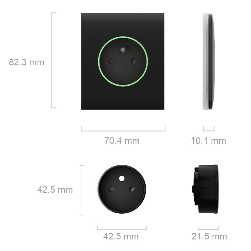 Zásuvky je možné používať samostatne alebo ich kombinovať s chytrými vypínačmi LightSwitch a inštalovať do rámčeka. Zariadenia majú rovnaký dizajn rámčeka a farebné odtiene.