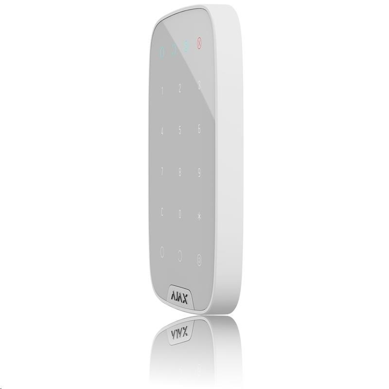 Ajax KeyPad je bezdrôtová dotyková klávesnica umožňujúca jednoduché ovládanie zabezpečovacieho systému zadaním číselného hesla alebo stlačením tlačidla. V krízovej situácii je tiež možné diskrétne spustiť tichý poplach.