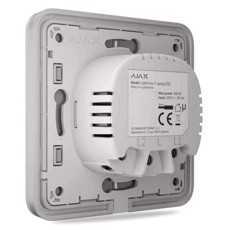 Panel je vždy nutné kombinovať s Ajax relé a Ajax rámčekom podľa vášho výberu - dohromady vytvára inteligentný nástenný vypínač - LightSwitch.