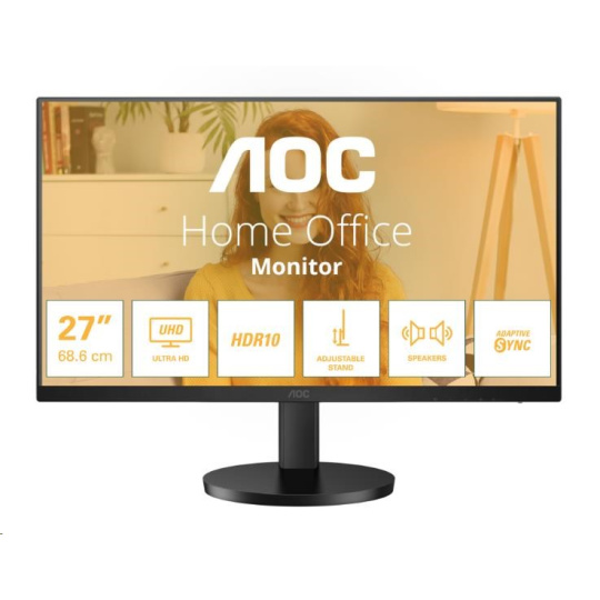 Zvýšte svoju produktivitu na maximum s monitorom AOC U27B3AF. Tento 27palcový UHD monitor sa môže pochváliť plynulou obnovovacou frekvenciou 60 Hz a elegantným trojstranným bezrámčovým dizajnom, ktorý zabezpečuje pohodlné sledovanie. Zbohom napätiu krku vďaka výškovo nastaviteľnému stojanu, ktorý poskytuje ergonomické funkcie pre vaše držanie tela. Vďaka technológii Adaptive Sync si navyše vychutnáte obraz bez slz a ohromne čerstvá grafika s podporou HDR10 zvýši váš vizuálny výkon. Vďaka vestavenému 2-wattovému reproduktoru si môžete dopriať lepší zvukový zážitok.
