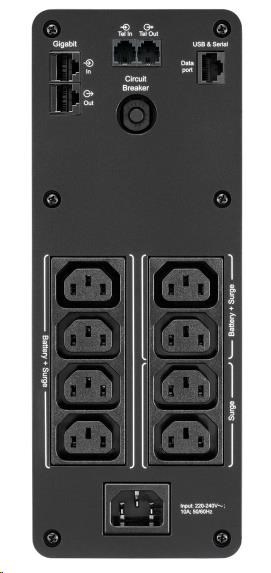 | Typ zásuviek | (6) IEC 320 C13 (záložná prevádzka na batérie) (2) IEC 320 C13 (prepäťová ochrana) |