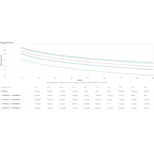 | Doba prevádzky pri zaťažení WMin.–max.: 90-900 W | 21 minút 9 sekúnd |