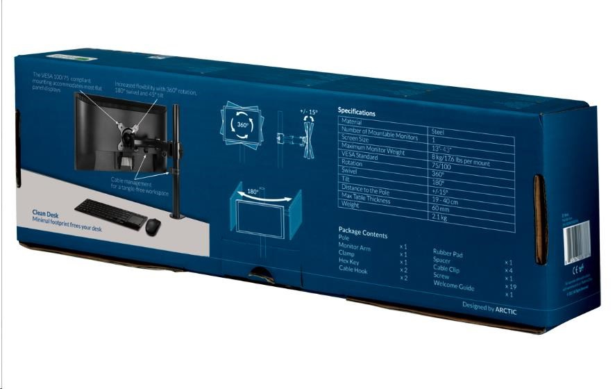 Rameno monitora možno namontovať na väčšinu povrchov pomocou robustnej a nastaviteľnej svorky, ktorá sa prispôsobí okraju stola rôznej hrúbky.