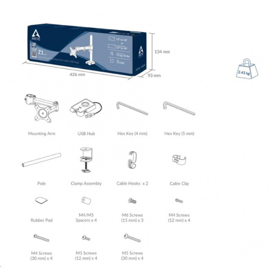 Rameno monitora ARCTIC Z1 bez problémov podporuje najnovšie ultraširokouhlé monitory (do 49 palcov).