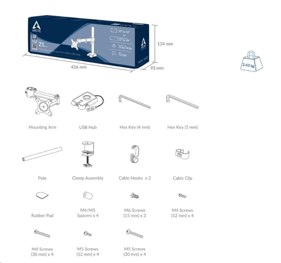 Kompatibilné sú aj klasické monitory s pomerom strán 16:9 (do 43 palcov). Z1 unesie celkovú záťaž 15 kg/33 libier.