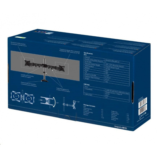 Stolný držiak ARCTIC Z2 Pro (Gen3) pre 2x LCD do 34", nosnosť 2x15 kg, 4x USB HUB, čierny