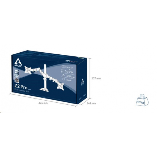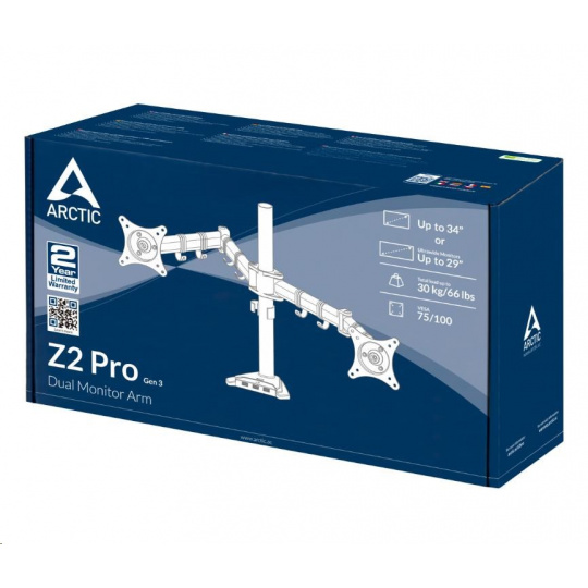 Rameno monitora ARCTIC Z2 Pro bez problémov podporuje najnovšie ultraširokouhlé monitory (do 29 palcov). Kompatibilné sú aj klasické monitory s pomerom strán 16:9 (do 34 palcov). Z2 Pro unesie celkovú záťaž 15 kg/33 libier.