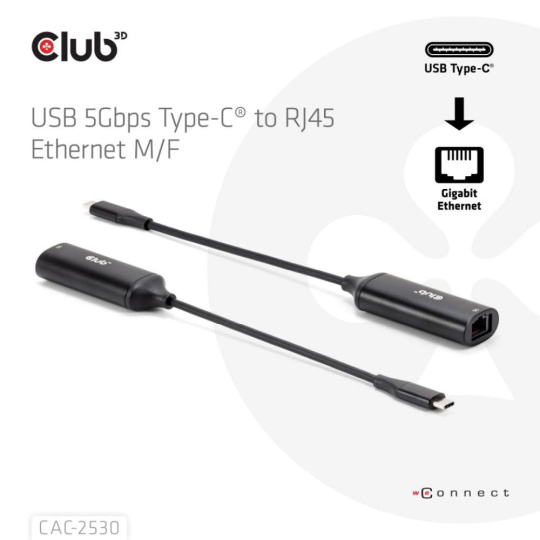 .Club3D Adaptér USB-C na RJ45, 5Gb, 24cm