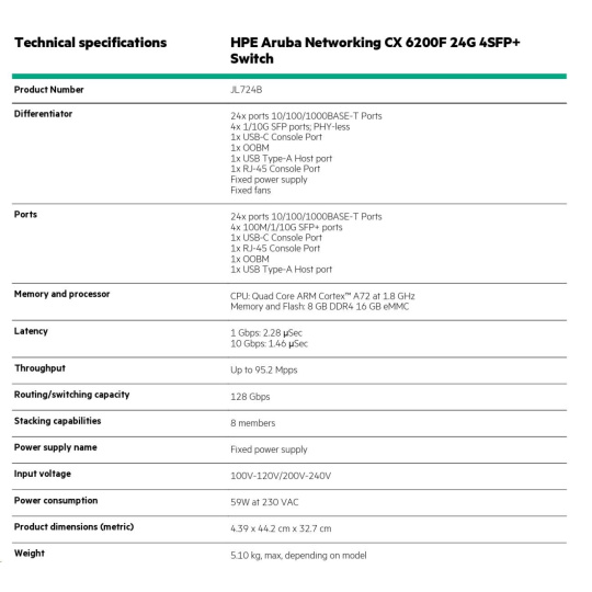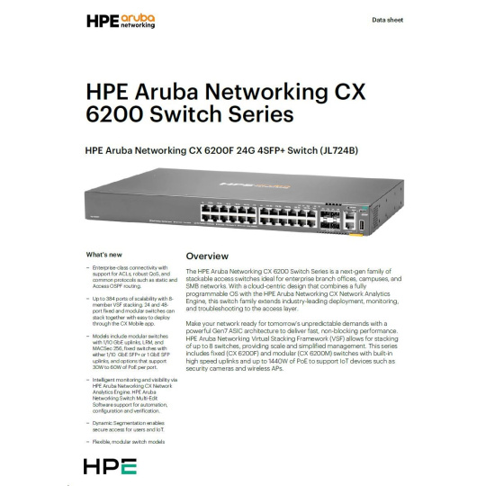| HPE Aruba Networking CX 6200F 24G 4SFP+ Switch (JL724A) | ||