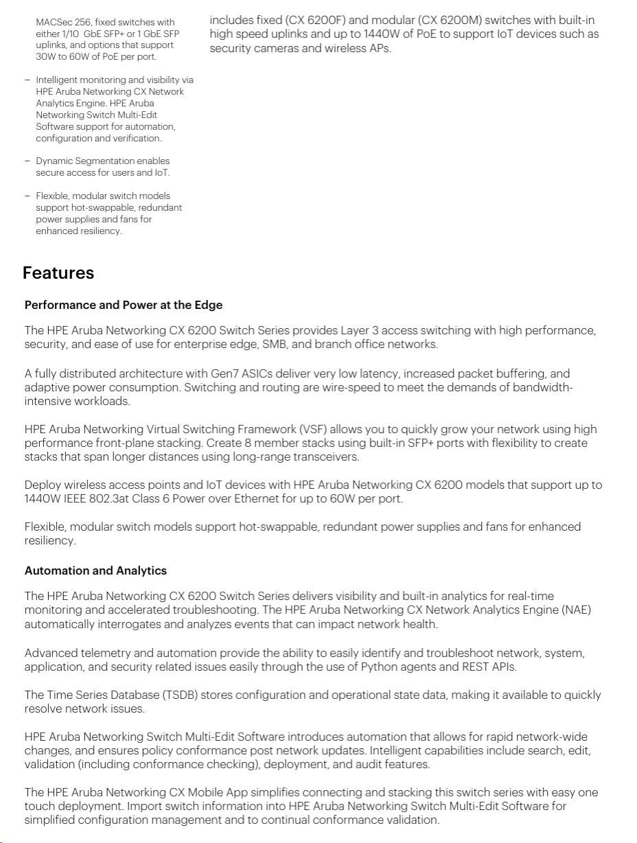 HPE Aruba Networking CX 6200F 24G Class4 PoE 4SFP+ 370W Switch JL725A RENEW