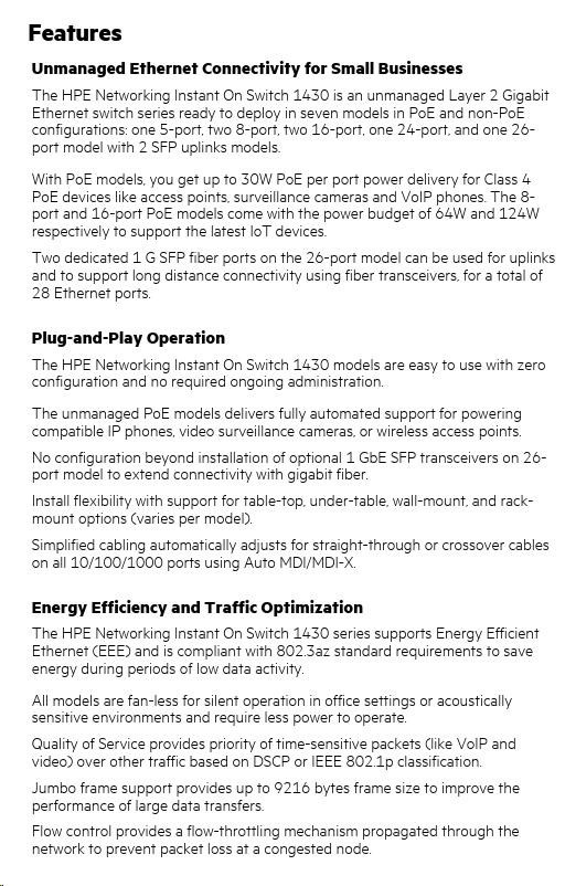 | HPE Networking Instant On Switch 16p Gigabit CL4 PoE 124W 1430 (R8R48A) | ||