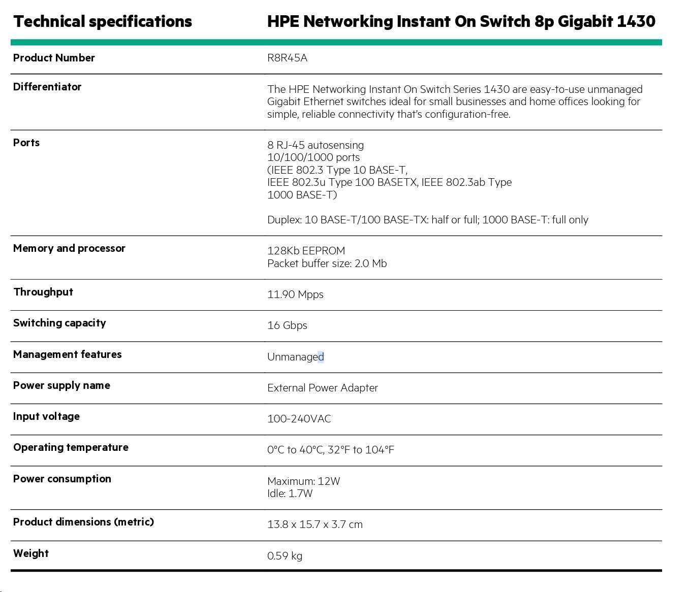 Product Name: HPE Networking Instant On Switch 1430 8-Port Gigabit