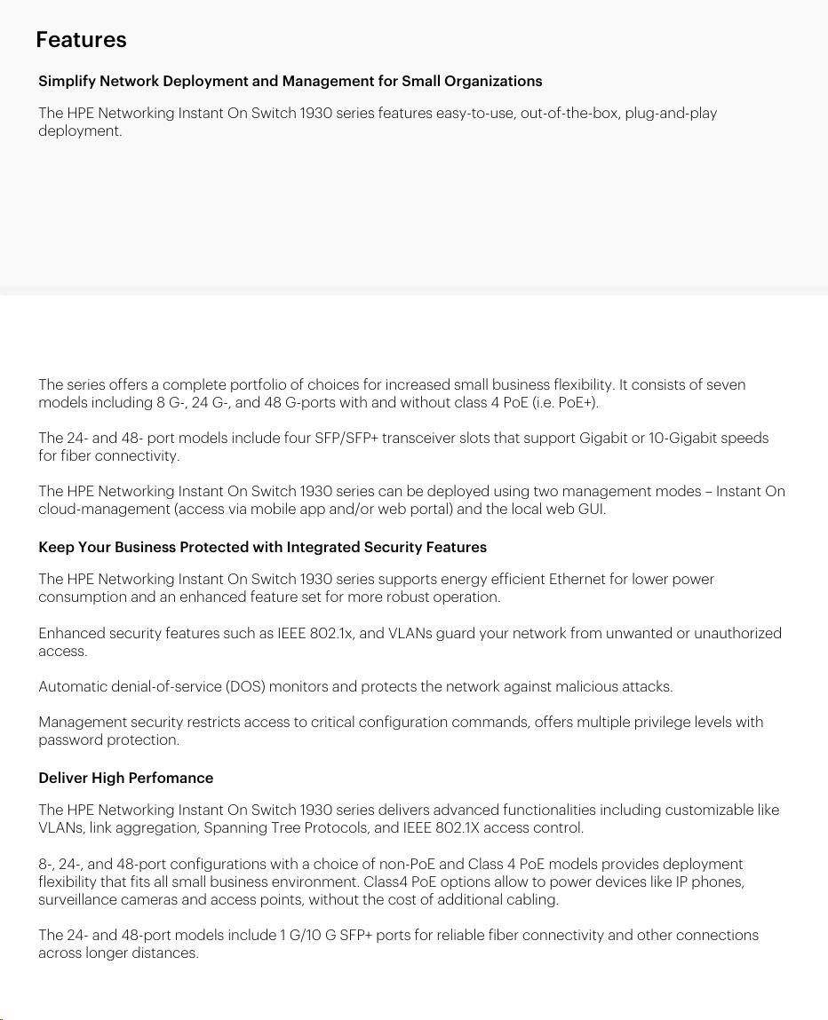 HPE Networking Instant On Switch 48p Gigabit 4p SFP+ Fanless 1930 JL685A (fanless)