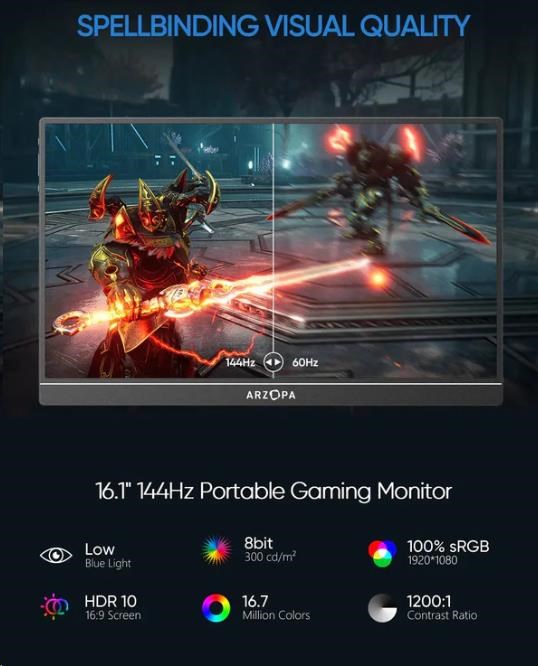 Díky širokým pozorovacím úhlům (178° horizontálně i vertikálně) je monitor Arzopa Z1RC ideální pro hraní her i tvůrčí úkoly a umožňuje vám vychutnat si skvělý obraz bez ohledu na úhel pohledu. Monitor má navíc vestavěný reproduktor, který poskytuje čistý zvuk, aniž by bylo nutné připojovat další zvuková zařízení.