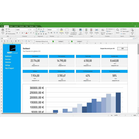 Vytváranie zložitých výpočtov a grafov v tabuľkách môže byť náročné: Výpočet z Ashampoo Office 9 je zábavný a pútavý. Od jednoduchých plánov až po zložitú firemnú finančnú dokumentáciu, Calculate je náhradou za Excel so všetkými funkciami a bez nezrovnalostí. Ponúka okamžité zvýraznenie syntaxe a overenie vzorcov, ktoré vám pomôžu odhaliť chyby v priebehu niekoľkých sekúnd. S viac ako 350 výpočtami, jednoduchou manipuláciou s tabuľkami a podporou obrovských údajových hárkov s miliónmi položiek je Calculate 9 ideálny pre akúkoľvek tabuľkovú úlohu. Funkcie na profesionálnej úrovni, ako sú gramofóny, uspokoja aj tých najpokročilejších používateľov. A tlač hotových tabuliek je veľmi jednoduchá s novým ukážkou zlomu strany. Vypočítať 9 používa formát súboru XLSX, rovnaký formát, aký používa Microsoft Excel!