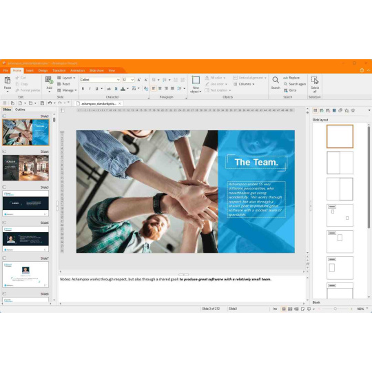 Všetci sme sa v minulosti stretli s alternatívami balíka Microsoft Office, ale nikdy s takými cenovo dostupnými a vynikajúco kompatibilnými s minulými a súčasnými formátmi dokumentov spoločnosti Microsoft. Kancelársky balík bez kompromisov, bez zdĺhavého učenia, Ashampoo Office 9 vám umožňuje vytvárať dokumenty, tabuľky a prezentácie rýchlejšie ako kedykoľvek predtým. Má všetky možnosti a pohodlie, ktoré by ste očakávali od moderného kancelárskeho balíka. A Ashampoo Office 9 neukladá vaše súbory do online cloudovej služby, ale tam, kam patria: do vášho počítača! Je to balík Office, po ktorom ste vždy túžili!