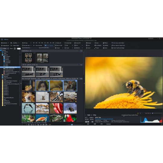Ashampoo Photo Commander 18 odstraňuje duplicitné obrázky pomocou štyroch techník súčasne! Vyskúšajte nové, prispôsobiteľné rozloženie obrazovky, výrazne vyššiu rýchlosť prezerania fotografií a výkonné nové formáty! Okamžite uvidíte, kde boli fotografie nasnímané, použite nové efekty a použite údaje XMP a EXIF na rýchle filtrovanie! S novými praktickými prepínačmi a rozhraním navrhnutým tak, aby podporovalo vaše pracovné postupy, zažijete Ashampoo Photo Commander ako nikdy predtým!