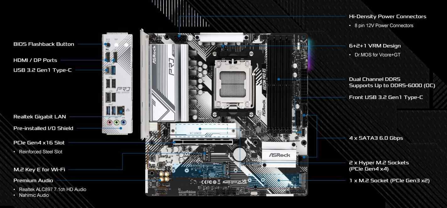 - Supports AMD Socket AM5 Ryzen™ 9000, 8000 and 7000 Series Processors