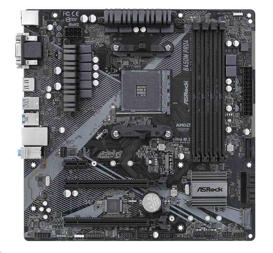 ASRock MB Sc AM4 B450M PRO4 R2.0, AMD B450, 4xDDR4, 1xHDMI, 1xDVI, 1xVGA, mATX